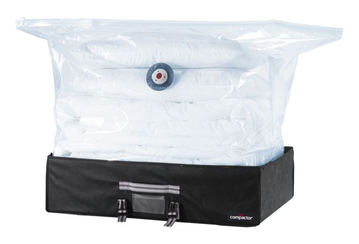 Get three times more storage space thanks to the Compactor vacuum storage range! Just imagine everything that you could store with three times more space in the wardrobe, closet or drawers. Compactor lets you compress linens, duvets and clothes without damaging the fabric.