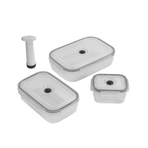 Compactor has designed a range of food storage boxes featuring a vacuum seal system. Fully airtight thanks to a silicone seal, these boxes are perfect for storing in the fridge, and are dishwasher and microwave safe.