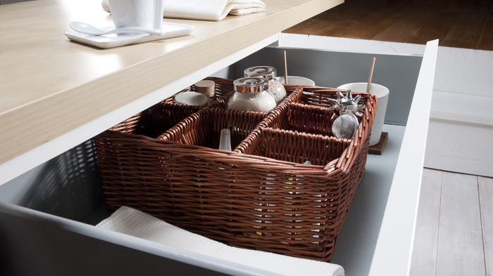 At a single glance you can see your cutlery, utensils and small kitchen accessories. A clear drawer where items are easy to find and use is key to turning your kitchen into a pleasant, appealing place.